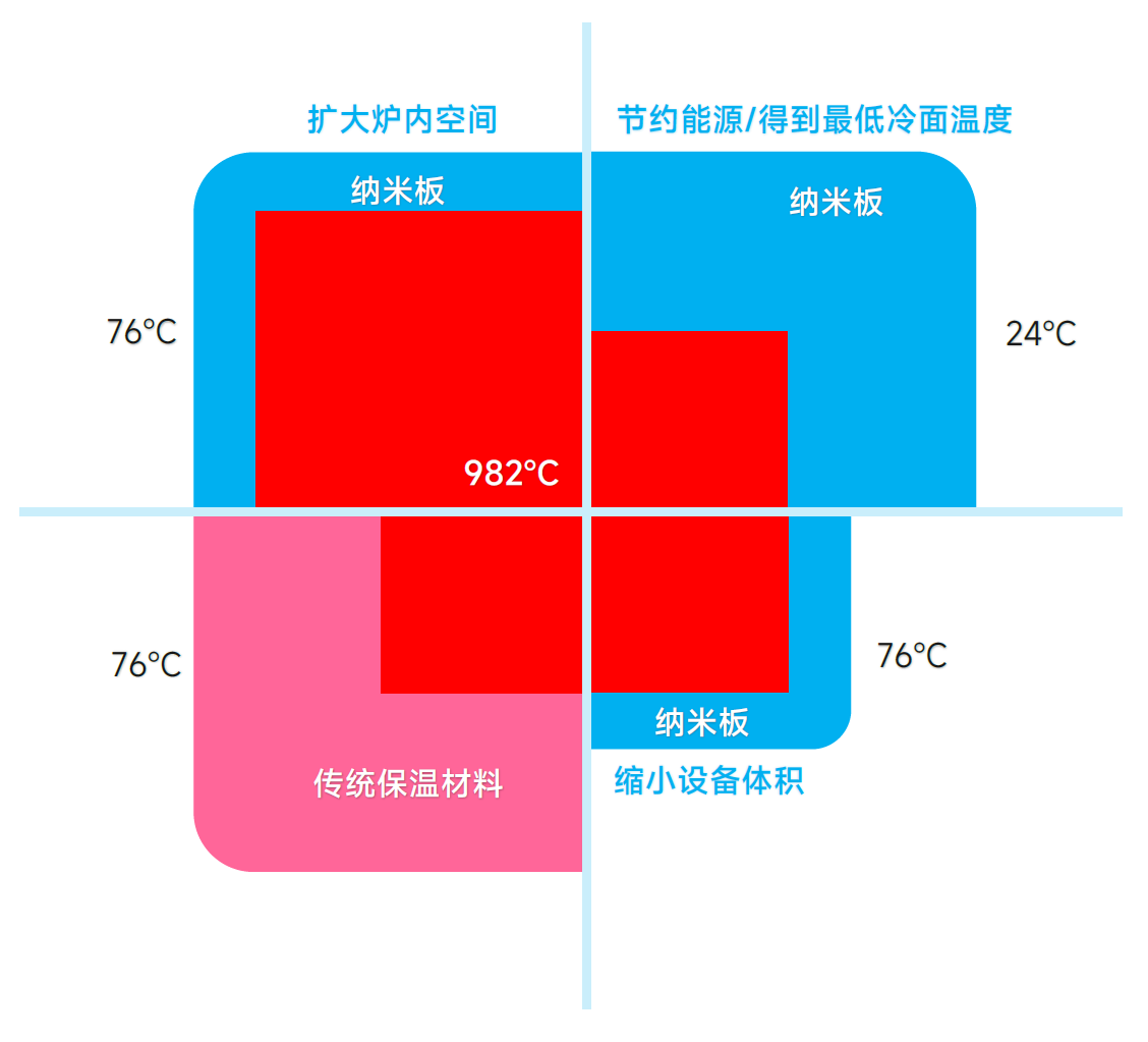 基于纳米微孔隔热原理(Microporous)生产的高温绝热材料,在欧美等工业国家已有近50年的应用。在高温、超低温工业领域的应用被广受青睐