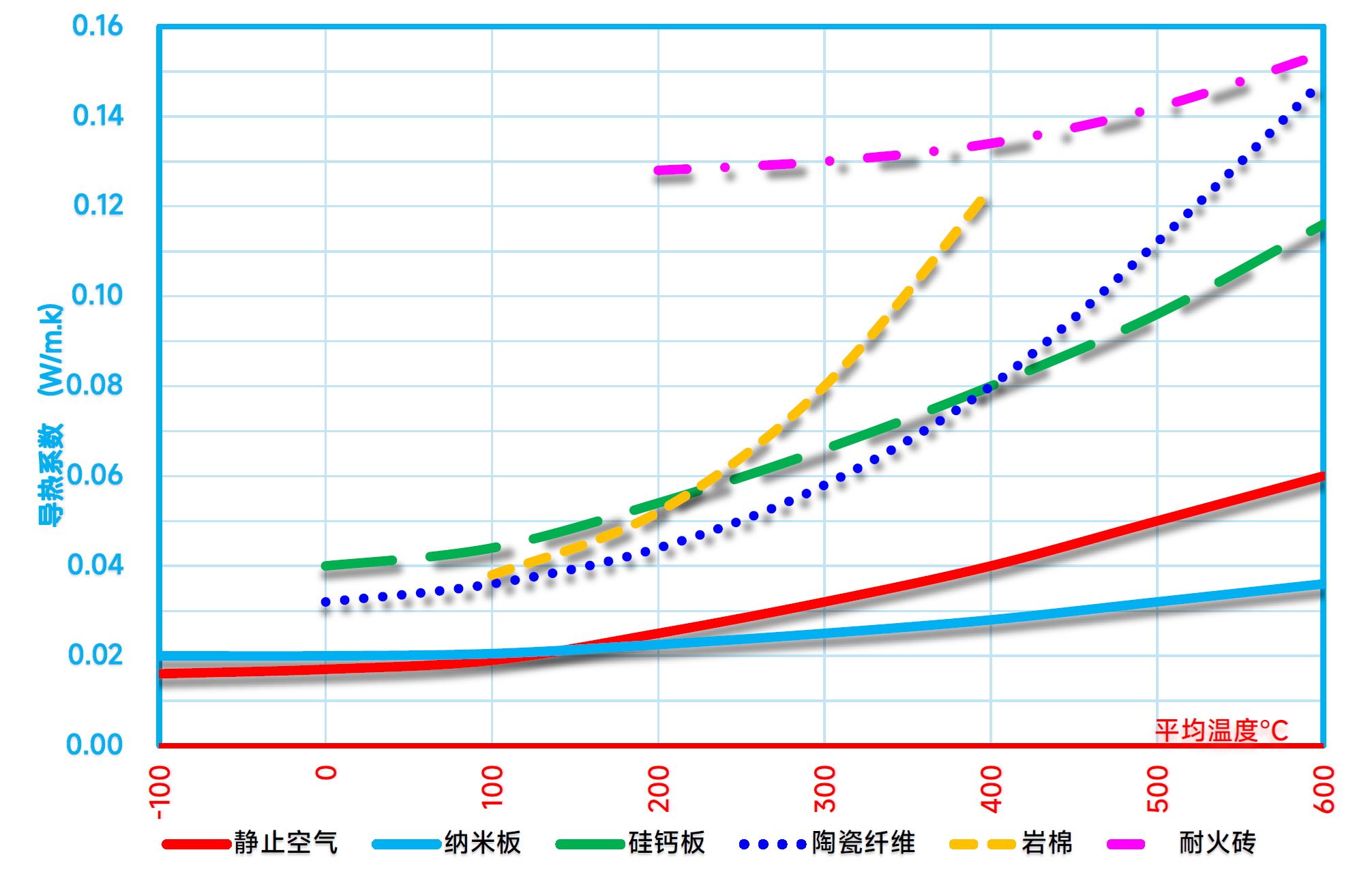 纳米板与传统隔热产品导热系数比较